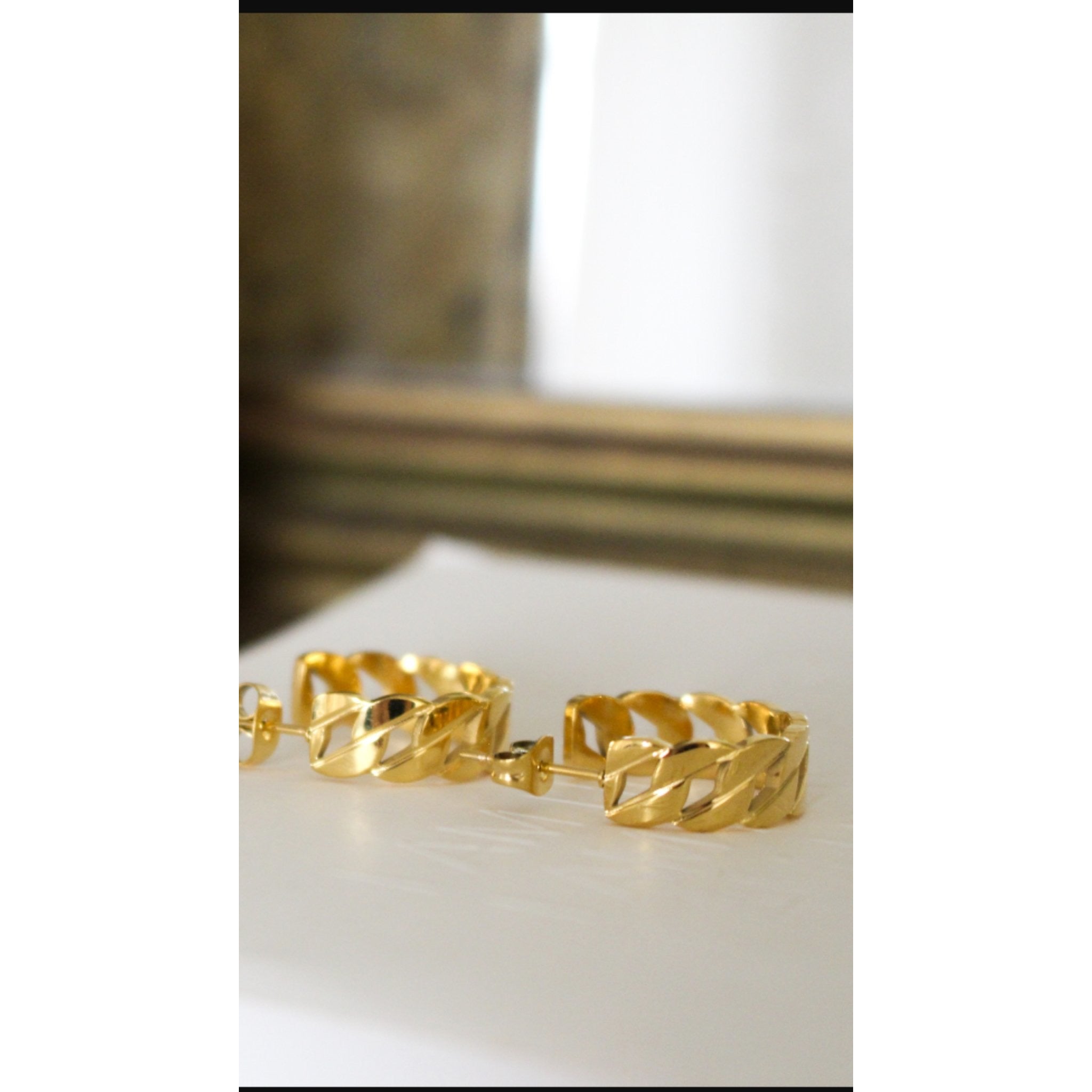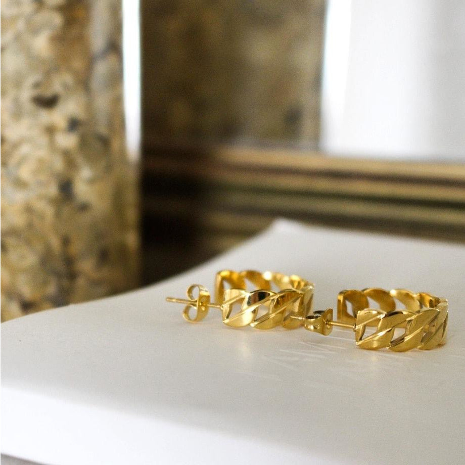 Stainless steel 18k gold plated hoops. Butterfly closure.